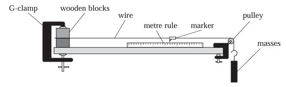 • 10. A student carries out an investigation to measure the Young modulus of the material of a wire. He clamps one end of the wire and passes the other end over a pulley as shown.