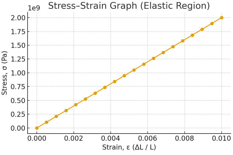 • A graph should be plotted with stress on the y-axis and strain on the x-axis. The graph is expected to be a straight line through the origin in the region where Hooke’s law is obeyed, which is the elastic region. The gradient of this straight-line portion of the graph is equal to the Young modulus of the wire’s material.