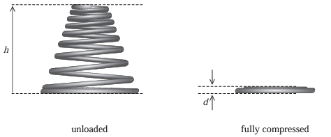• 12. In a conical spring the diameter of the coils increases over its length. The spring can be designed so that each coil fits into the inner diameter of the next coil so they take up minimal space when fully compressed.
