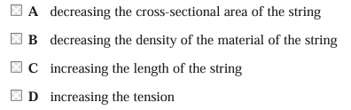 • 4. A string is held under tension. When it is plucked it vibrates with a frequency f. Which of the following would result in a lower value for f ?