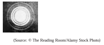 • 5. The image shows a diffraction pattern observed when a beam of electrons is fired at thin gold foil.